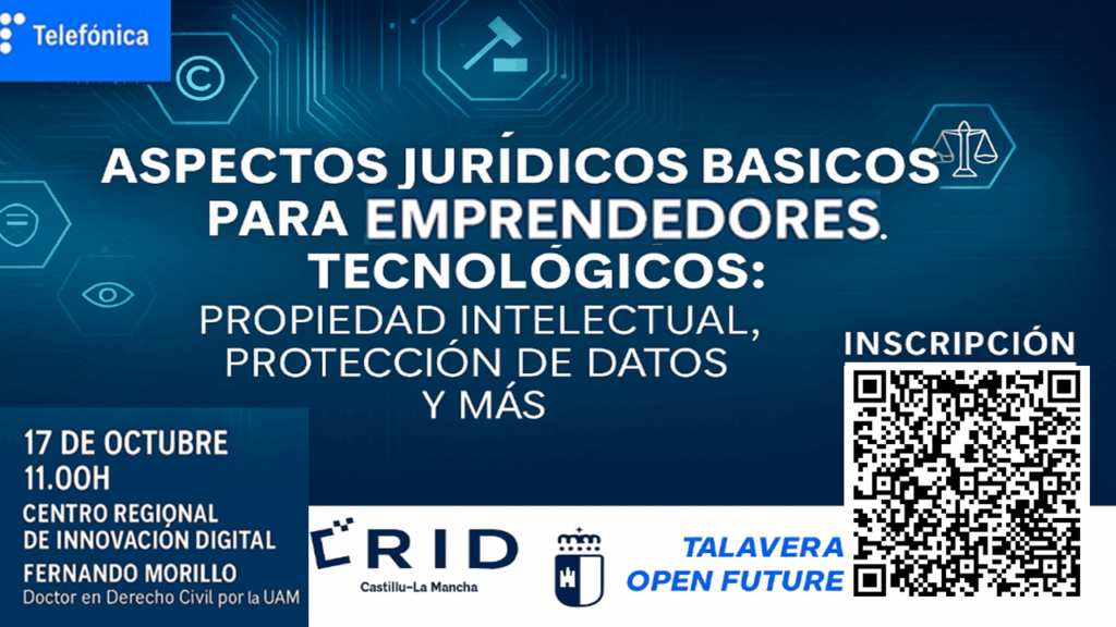 Desde StartupCLM te animamos a participar en la conferencia “Aspectos Jurídicos Básicos para Emprendedores Tecnológicos: Propiedad Intelectual, Protección de Datos y Más”, una cita imprescindible para quienes están creando o consolidando una startup en el ámbito tecnológico.